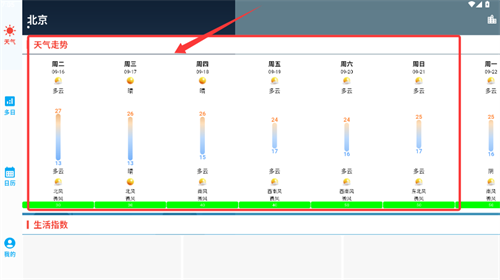 3、如需了解天气变化趋势,可查看天气走势板块获取未来预报信息。
