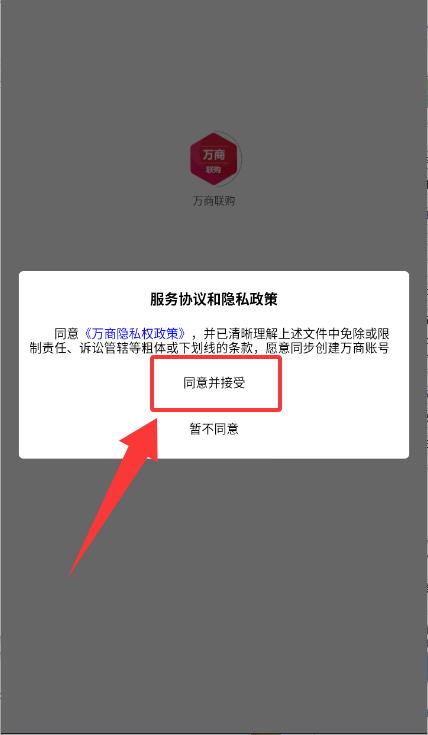 1、打开应用后点击服务协议与隐私政策提示框,同意并接受进入登录界面。