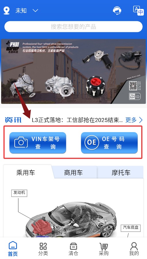 2、智能VIN查询支持通过车辆识别码(VIN)快速匹配适配配件,精准定位车型所需零部件,避免采购错误,提升采购效率。