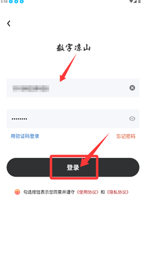 1、在数字凉山登录页填写账号密码,同意协议后登录。