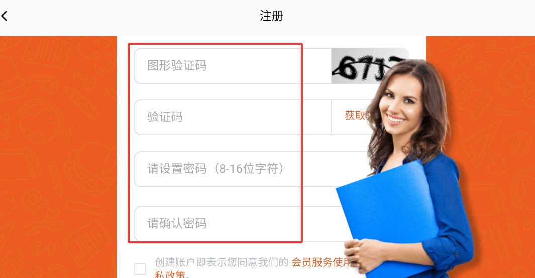 3、注册时输入手机号、图形验证码、短信验证码并设置双重密码。