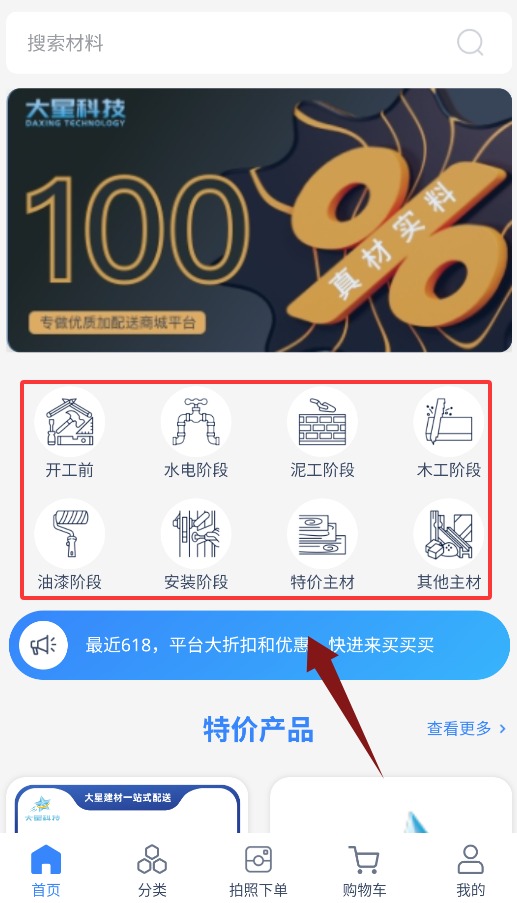 3、特价促销专区定期推出限时特价、满减优惠、新客专享等促销活动,提供低于市场价的优质建材,帮助用户降低采购成本。