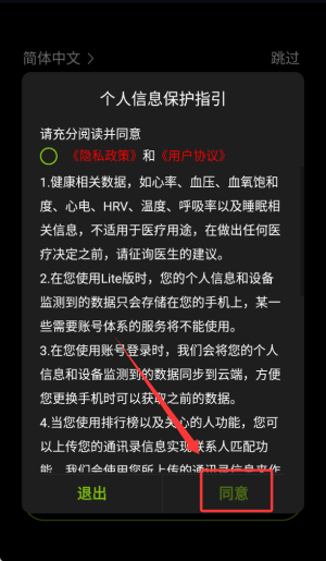 1、阅读并确认服务协议,点击进入运动管理功能主操作界面。