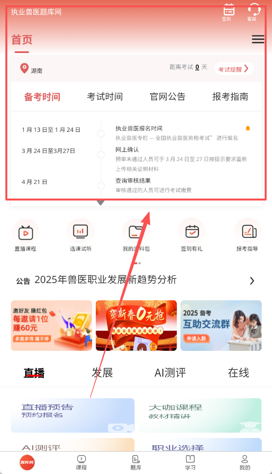 1、初次使用应用时,用户可直接在主页浏览丰富的课程分类与题库模块,根据个人备考科目与复习阶段选择相应的课程内容进行学习。