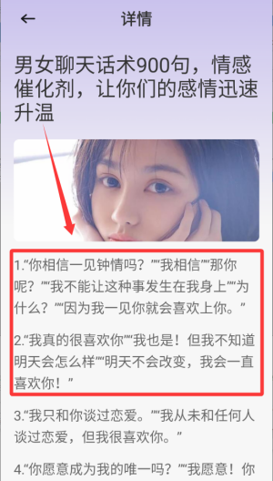 4、进入后可以看到文章的话术内容直接往下滑动可以浏览全部。