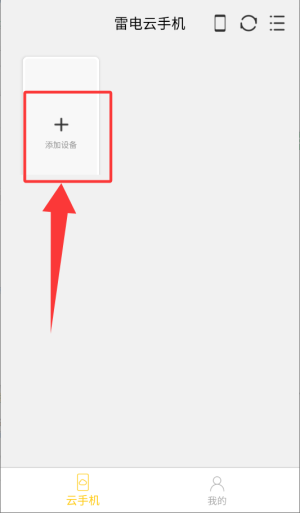 3、进入云手机主页面后,点击添加设备按钮即可开始配置相应云端设备。
