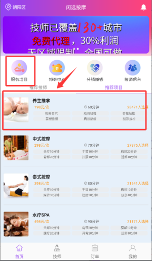 2.主推按摩服务平台配备专业的服务团队,为大家打造更安全、更健康的服务。