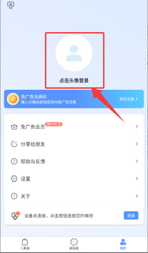 2、进入我的页面后点击头像登录选项,完成账号登录操作。