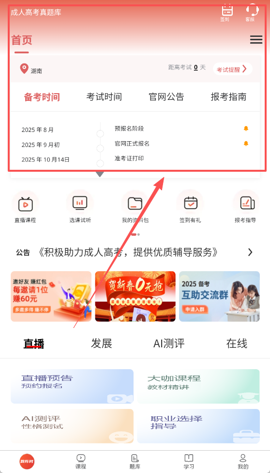 4、整个界面设计简洁功能分区清晰,从刷题听课到查询资讯都能快速完成极大节省考生的时间与精力。