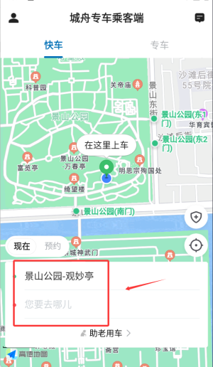 2、输入目标地点发起即时用车需求,系统自动匹配附近可用车辆。