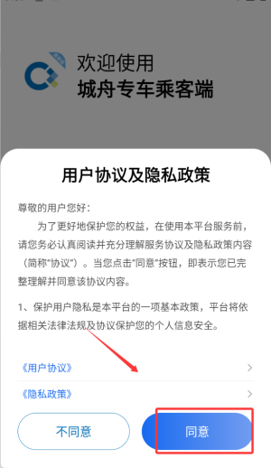 1、阅读并确认服务协议,点击进入网约车功能主操作界面。
