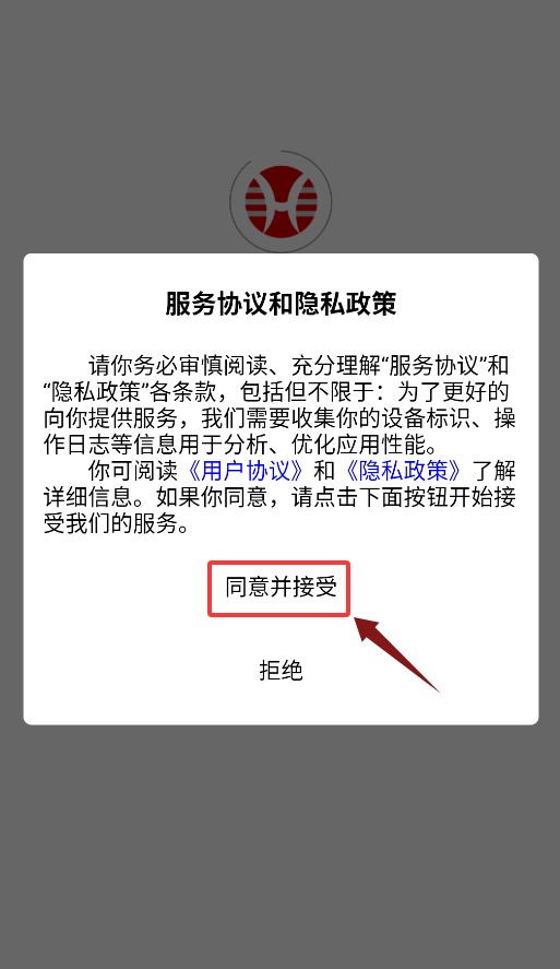 1、首次启动应用需点击确认弹窗协议,同意后方可进入主界面。