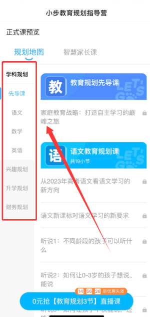 1、进入规划板块,可浏览并选择不同类型的学习计划与分类方案。