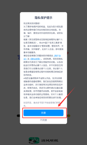 1、在隐私提示页,点击红色箭头所指的同意按钮。