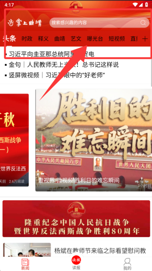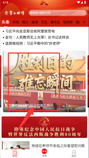 3、新闻板块支持电子读报浏览、电视节目观看及广播内容收听等功能入口。