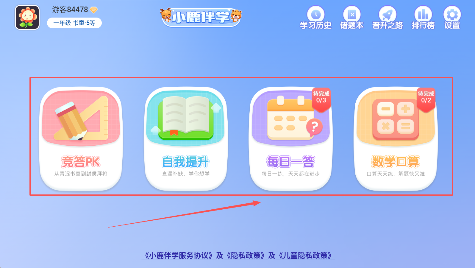 1、启动小鹿伴学应用程序并完成初始引导步骤,在阅读相关协议后点击同意按钮即可进入软件主界面。