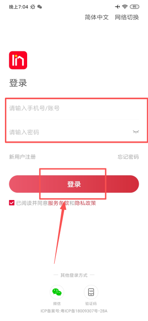 3、在登录页填写手机号与密码并勾选协议,点击登录完成操作。