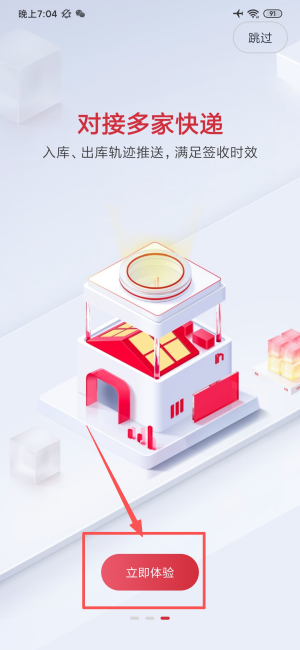 1、打开应用后在功能介绍页点击立即体验按钮,进入邻里驿站主界面。