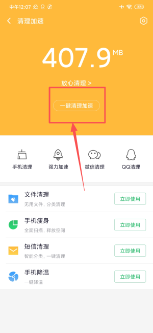 3、【清理加速】一键加速解决卡慢 深度清理释放空间。