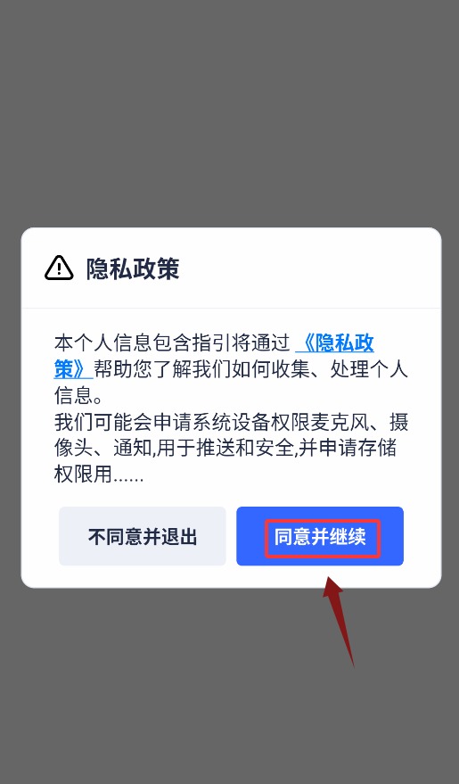 1、首次启动应用需点击确认弹窗协议,同意后方可进入登录界面。