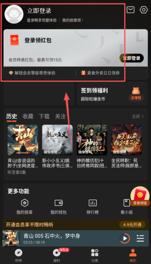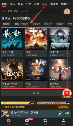 1、首先,下载安装懒人听书高级版App,注册完成后即可开始探索各种有声内容,界面简洁,操作便捷。