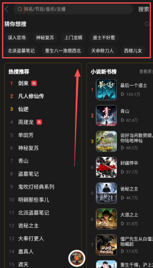 2、其次,使用搜索功能可快速查找心仪的有声书,输入书名或作者即可获取相关信息,方便用户高效地找到所需内容。