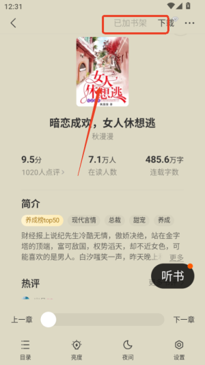 3、找到想读的小说后,点击加入书架方便后续查找,并进入阅读界面开始免费阅读。