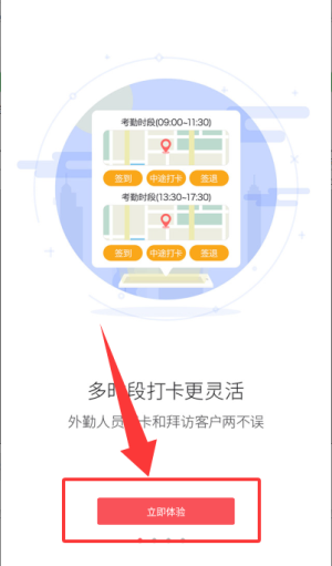 2、了解多时段打卡功能后,点击立即体验选项进入下一步界面。