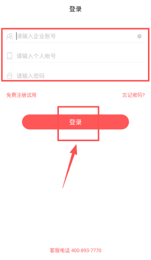 3、在登录界面填写企业账号个人账号及密码,点击登录按钮即可。