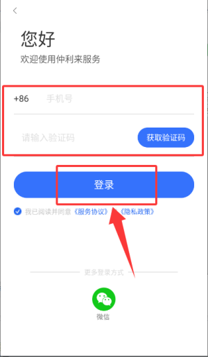 1、在登录页填写手机号与验证码,点击登录完成操作。
