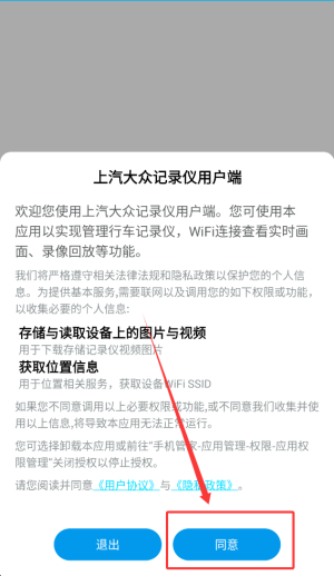 上汽大众行车记录仪用户端是配合行车记录仪硬件设备使用的手机控制软件。此软件通过WIFI连接行车记录仪硬件设备,能够通过手机完成直播预览,视频录音,拍照,可以将设备的录影和照片同步到手机,进行观看和分享,并对设备进行管理配置。