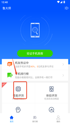2、进入软件主界面,点击性能测试或跑分功能,等待其自动完成对手机硬件的全面评测。