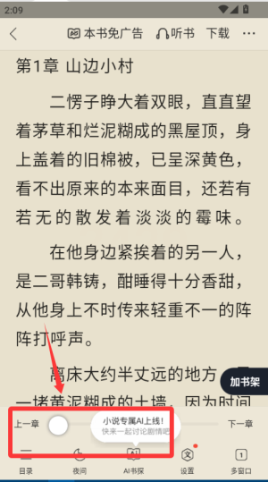 2、阅读时点屏幕中央调出菜单,可以设置字体大小和护眼背景。上滑翻页,长按文字能做笔记。