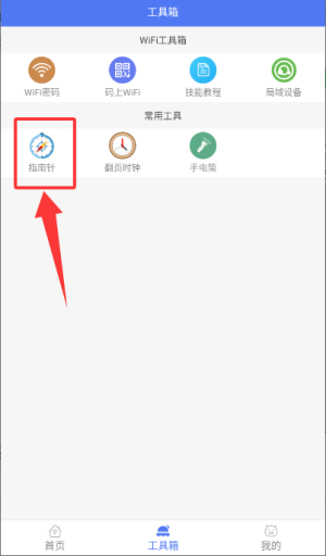 2、进入工具箱页面找到指南针功能选项,点击进入工具界面。