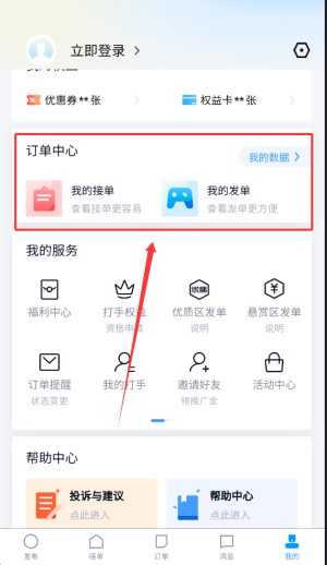 4、我的页面包含订单中心,便于集中管理与查看所有接单记录及当前状态。