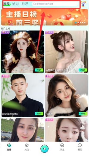 1、浏览推荐与附近直播,首页会根据算法推荐可能感兴趣的直播,也可基于定位查看附近的主播内容。