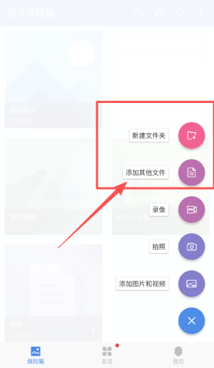1、点击“+”按钮可以新建文件夹或添加文件,通过“添加图片和视频”将手机内的隐私照片、视频导入到软件中并妥善保存。