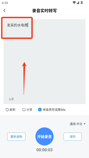 2、转换完成后可以编辑文本内容,修正识别错误的字词,并选择复制或导出为文档。