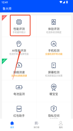 2、点击首页的跑分按钮开始全面性能测试,系统会自动生成详细的评分报告。