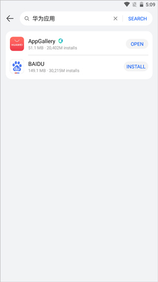譬如用户就想下载AppGallery时,在上面搜索华为应用市场时就会出现这个国际版了,同时还可以看到百度也有其国际版app