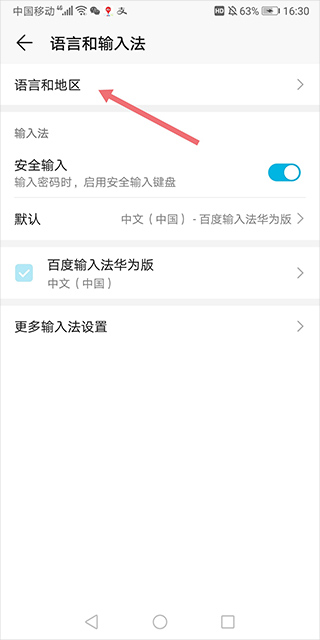 如果用户想要切换地区,例如切换到美国、英国、俄罗斯等国家,或者是中国台湾、香港、澳门地区,需要根据用户的手机是否支持更改语言环境。小编这里以华为手机为例说明下,用户首先可以进入手机的设置页面中的系统设置项中点击【语言和输入法】