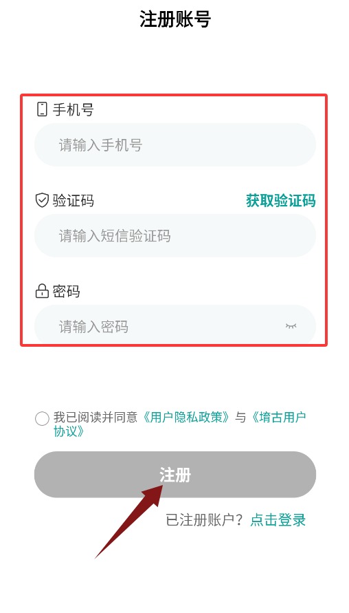 3、在注册页面输入手机号、验证码并设置密码,即可完成注册。