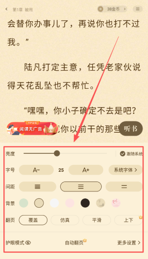 4、阅读设置选项允许用户自由调整界面背景和字体样式,打造最符合个人喜好的阅读环境,让您畅享无阻阅读乐趣。