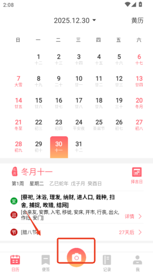 1、打开日历相机app后点击拍摄按钮,可直接用内置相机记录当前画面和日期信息。