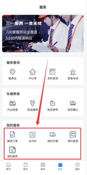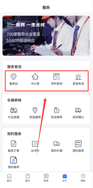 3、服务板块集中展示服务站信息、中心库资源、技术资料查询及紧急联系电话等支持服务。