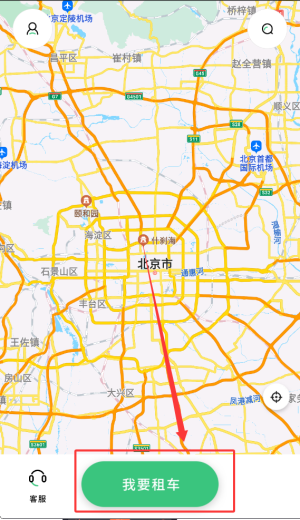 3、主页设有租车服务入口,支持用户快速发起车辆租赁需求并完成相关流程。