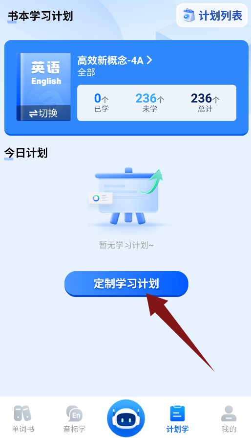 4、计划学界面支持点击定制个人学习计划,帮助规划学习进度。