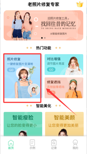 1、修复老旧照片,用户可上传受损、划痕或褪色的老照片,应用将自动识别并修复瑕疵,恢复画面完整度。