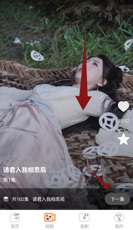2、短剧界面可通过下滑浏览剧集,点击“下一集”按钮继续观看。