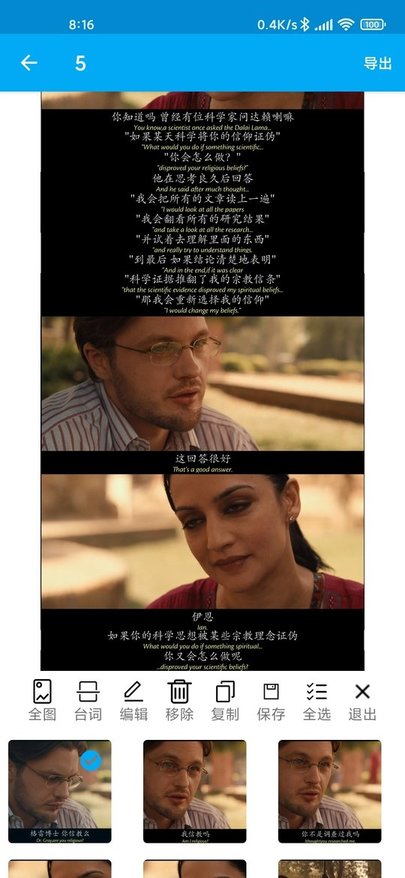 1、打开软件后选择台词自动长截屏功能,框选需要截取的电影或视频片段,系统就会智能识别对白并生成长截图。
